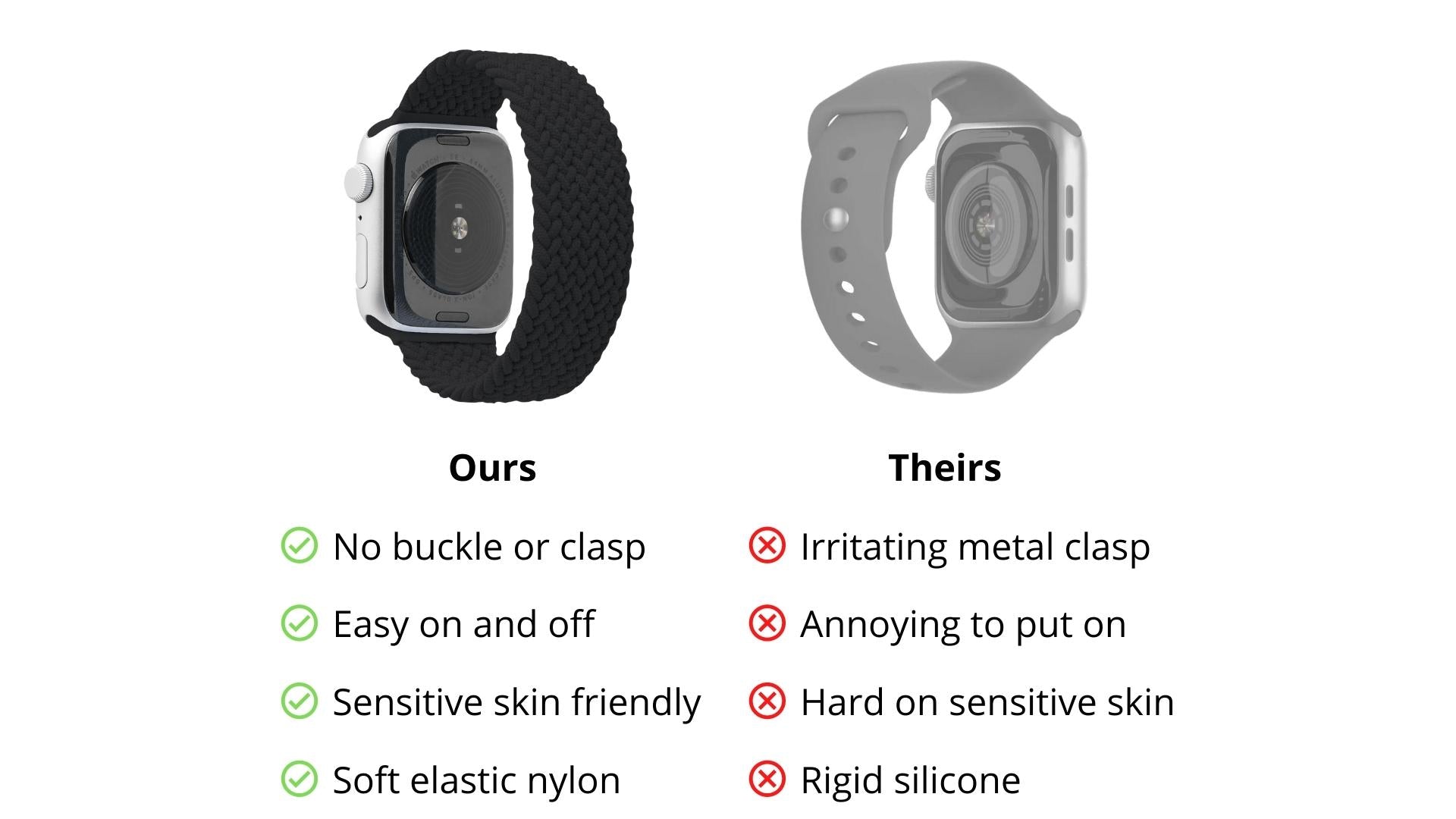 Buckles and clasps are a thing of the past. Made from lightweight elastic nylon with no buckles or clasps, this band is super comfy for all day wear. Your wrist is going to thank you.